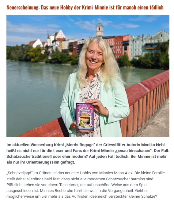 OVB Heimatzeitungen November 2021Buchvorstellung (bei Radio Regenbogen): "Mords-Kaliber: Krimi-Minnies zweiter Fall" (Juli 2021)